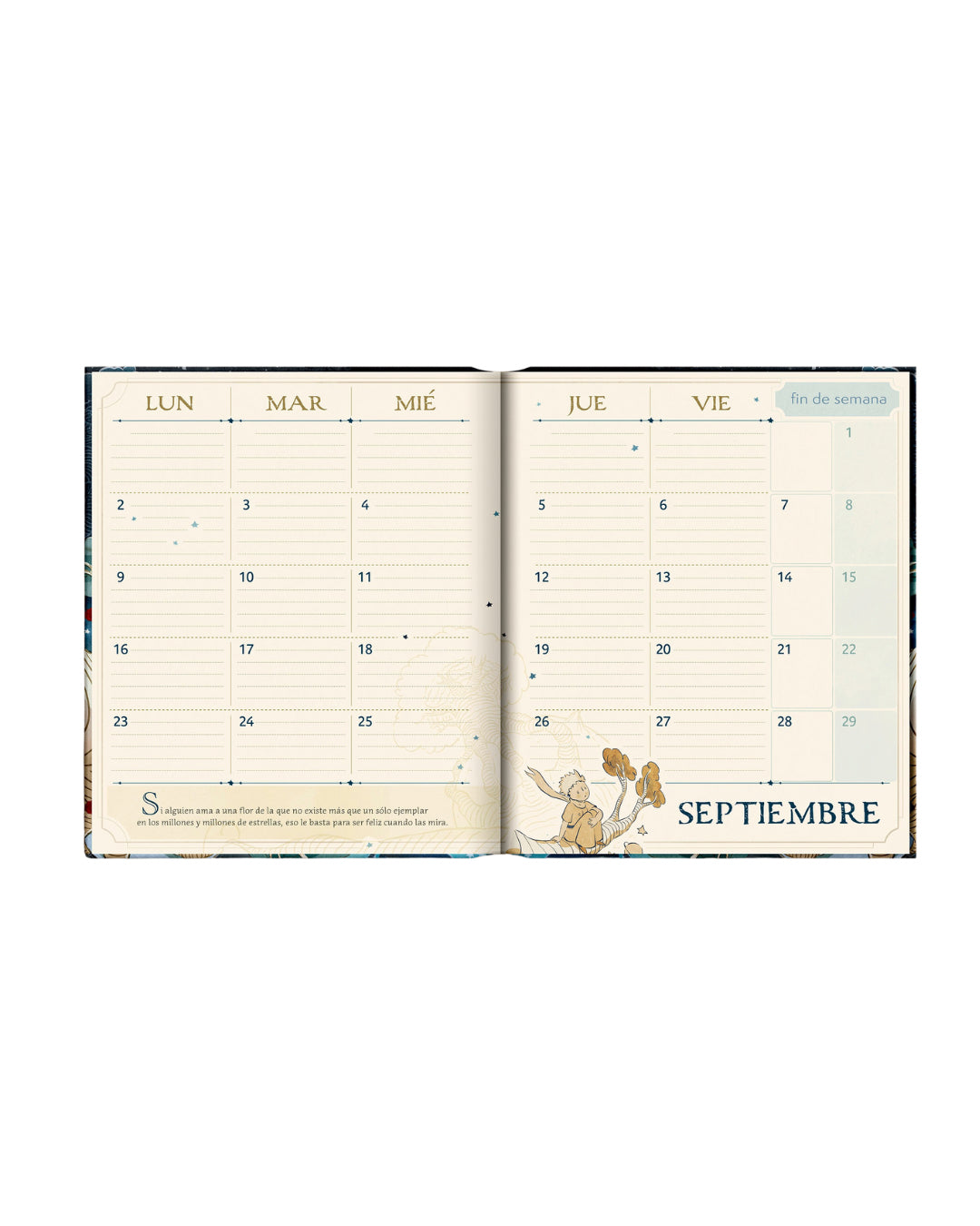 - Cuenta con hojas de información personal, calendario de 2 años, calendario personal, planeador mensual, hojas para notas, notitas recortables, hojas para teléfonos y direcciones, bolsillo con hoja de stickers.