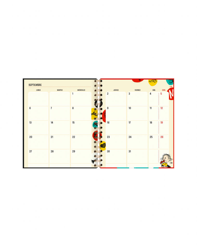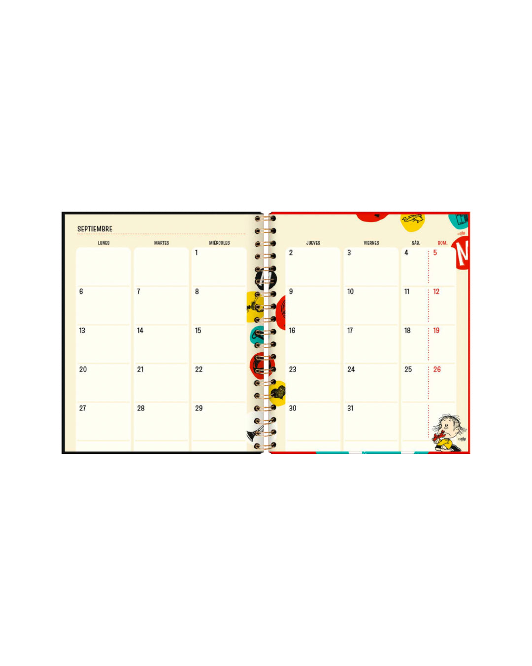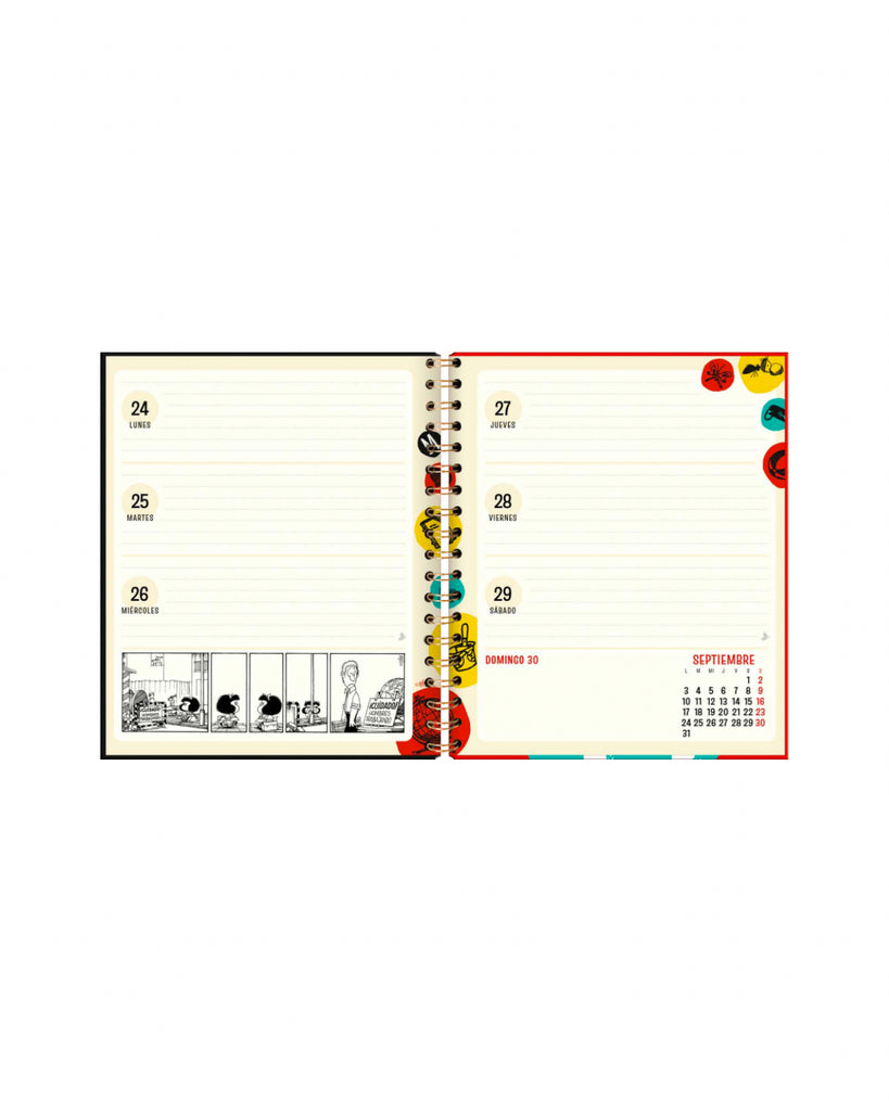 - Cuenta con hojas de información personal, calendario de 2 años, calendario personal, planeador mensual, hojas para notas, notitas desprendibles para recordar cosas importantes, hojas para teléfonos y direcciones, bolsillo con hoja de stickers.